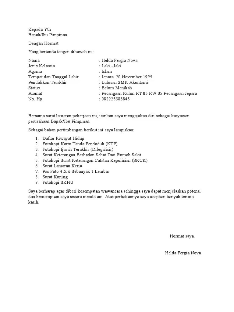 Contoh surat lamaran kerja lulusan smk jurusan akuntansi, contoh .